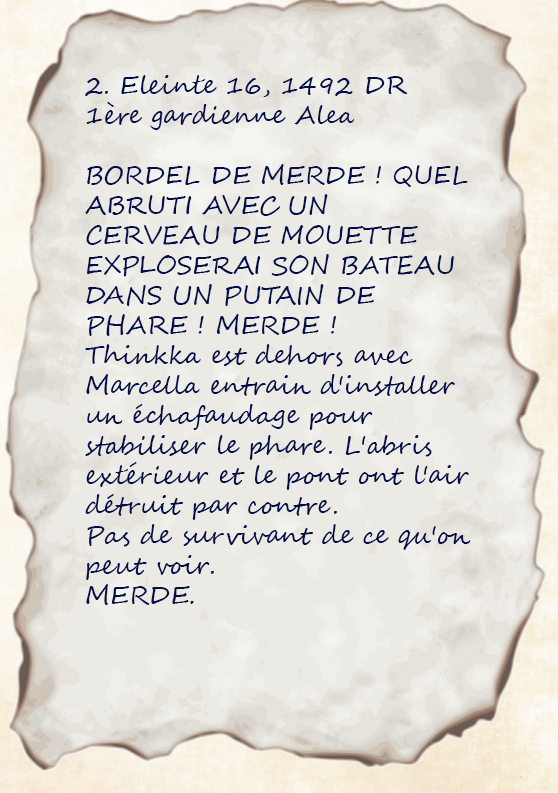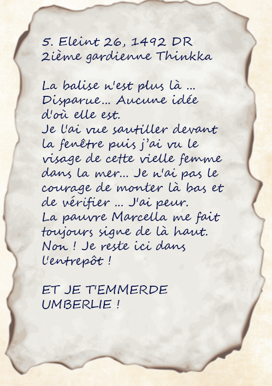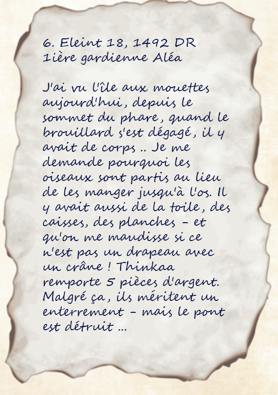 Alors ouais, c’est pas vraiment un fantôme, enfin c’est compliqué à expliquer, c’est un revenant mais en même temps pas trop… Le groupe a tenté de le suivre mais Mousse, Melorae et Esarielle n’ont pas su résister à ses plaintes et ont finis comme qui dirais STUN