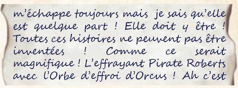 Une fois le capitaine, ou en tout cas ce qu’il en reste, détruit, les aventuriers fouillent la caverne et y trouvent 2 choses. L’orbe d’effroi d’Orcus, un puissant objet magique que Vent identifie être un objet maudit, ainsi que l’orbe qui permet au phare d’illuminer les alentours. Ils prennent les deux boules, remette le phare en marche et retourne sur L’aventure de Valkur qui les conduits pour le moment en sécurité dans une crique.